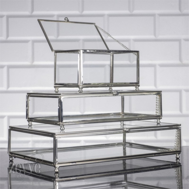 LEİLA CAM SANDIK GÜMÜŞ ORTA BOY 25x15x7 -12