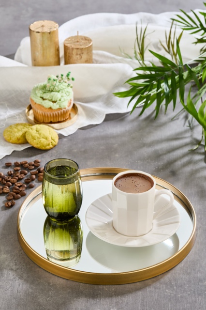 LEİLA YUVARLAK DEKORATİF SUNUMLUK ALTIN 24x24x2 adet