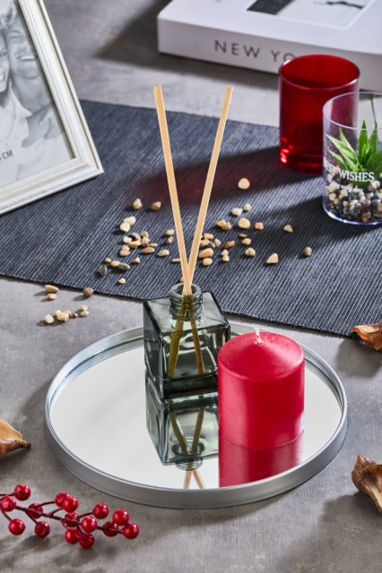 LEİLA YUVARLAK DEKORATİF SUNUMLUK GÜMÜŞ 24x24x2